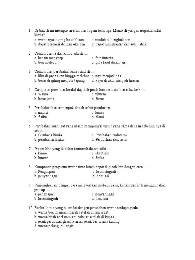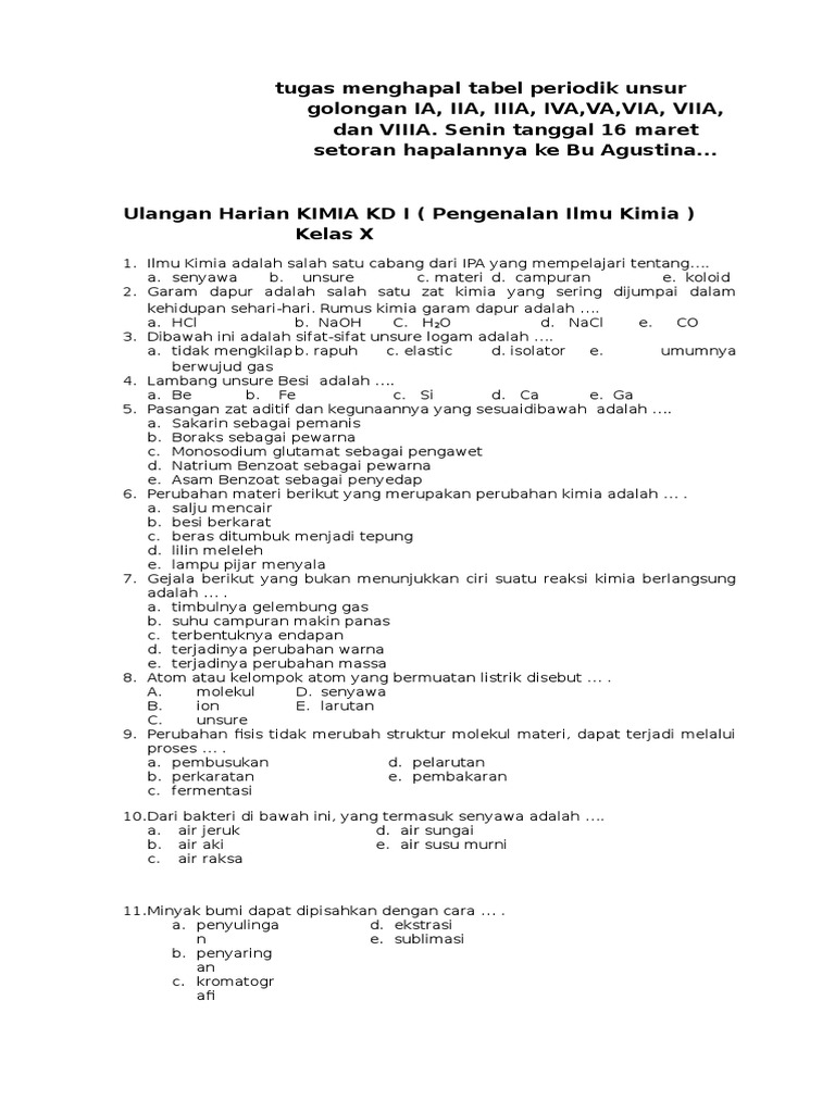 Soal Pilihan Ganda Kimia Kelas X Semester 1 2 Irfan Kamal