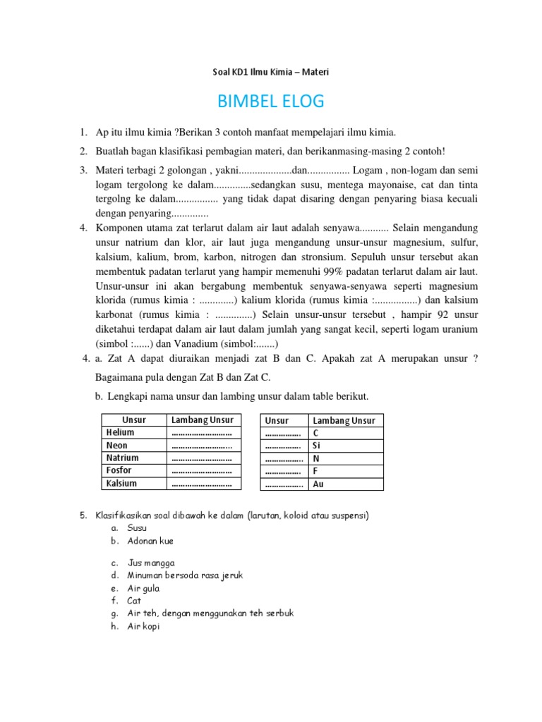 Soal Pengenalan Ilmu Kimia Kelas X2