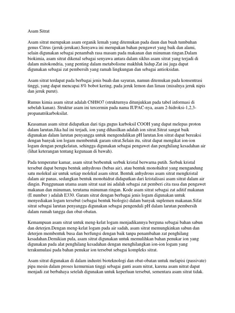 Asam Sitrat Merupakan Asam Organik Lemah Yang Ditemukan Pada Daun