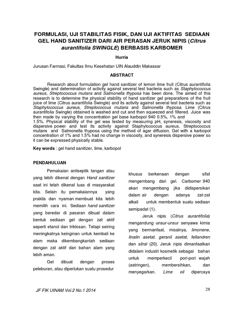 Pengaruh Pengunaan Perasan Jeruk Nipis Citrus Aurantifolia S
