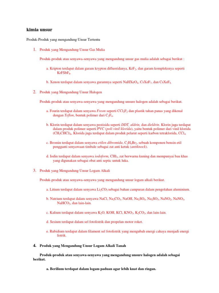 Kegunaan Dan Pembuatan Unsur Kimia