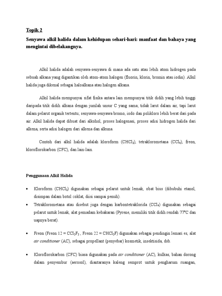 Manfaat Kegunaan Haloalkana Dampak Bahaya Senyawa Kimia