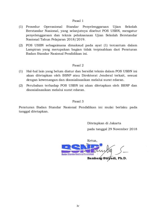 Prosedur Operasional Standar Pos Usbn 2019 Sd Smp Sma Smk Bsnp