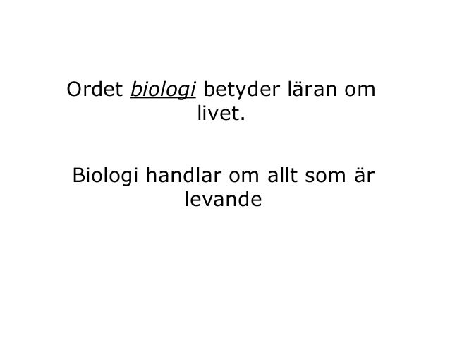 Biologi ar laran om livet och behandlar allt levande runt omkring oss allt fran minimala mikroorganismer och insekter till ofantliga faglar och havslevande valar. Ordet biologi betyder laran om livet.