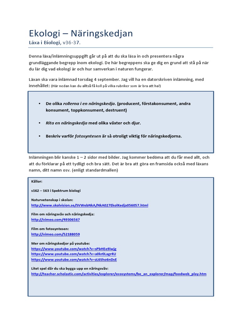 Introduktion Till Biologi 1 Magnus Ehingers Undervisning