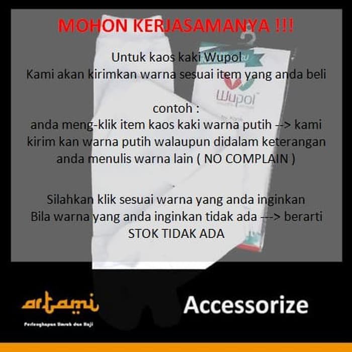 Jual kaos kaki wudhu basic by aura warna putihhitamcoklat bahan adem nyaman dengan harga rp 18900 dari toko online supergross jakarta timur. Kami jual kaos kaki soka wudhu untuk anda dengan warna yang tersedia hitam coklat dan putih agar cocok dipadukan dengan busana anda dan mudah dalam berwudhu tanpa. Untuk menghilangkan noda membandel pada kaos kaki putih.