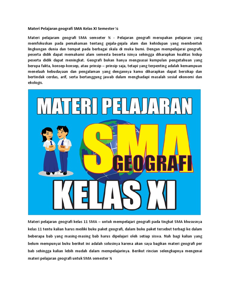 Materi Pelajaran Geografi Sma Kelas Xi Semester 1 2