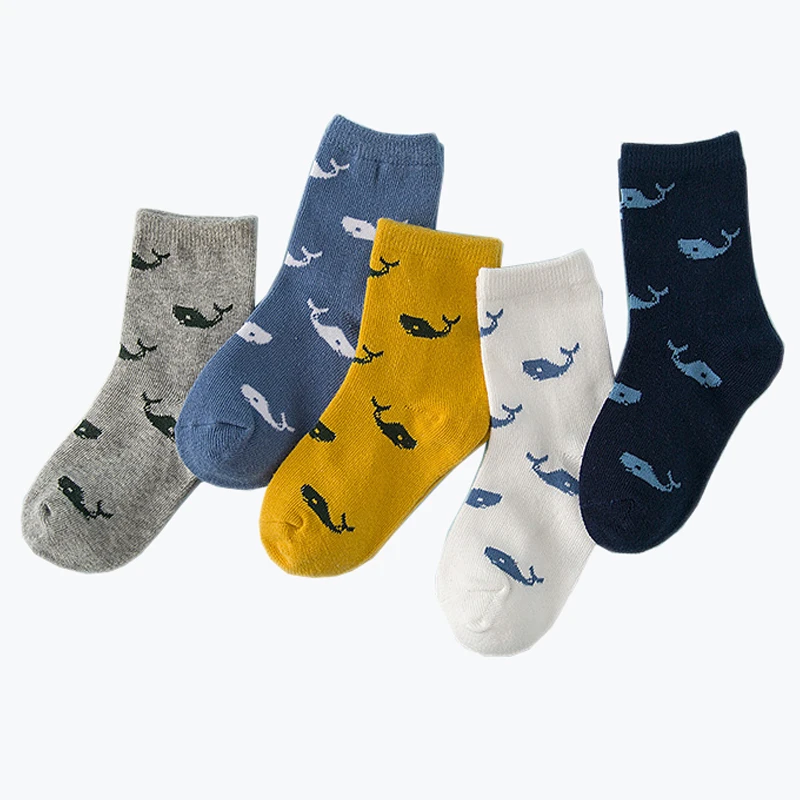 Lucu Kartun Kecil Ikan Paus Jacquard Kapas Rajutan Anak Kaus Kaki