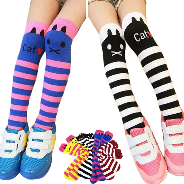 Balita Anak Anak Kucing Girls Lutut Tinggi Kaos Kaki Sekolah Kapas