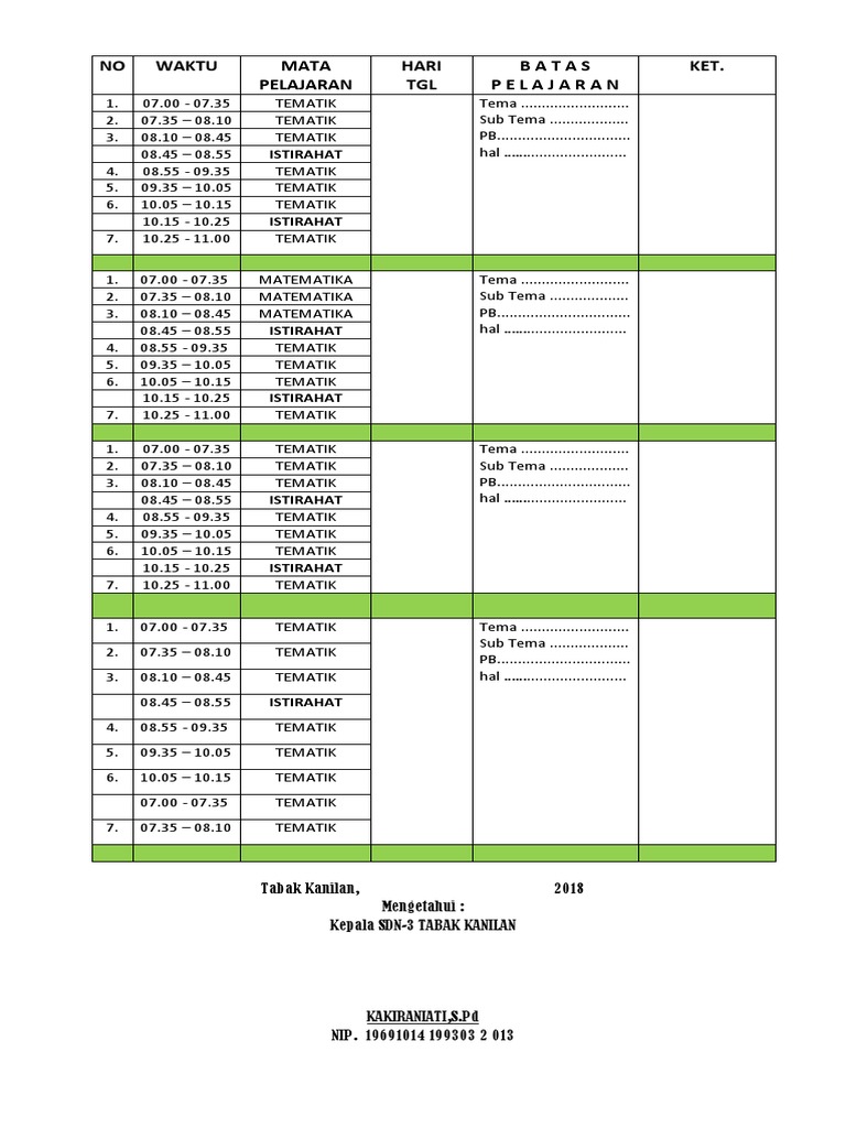 Format Jurnal Mengajar Semester Ganjil Sd Kelas 1 2 3 4 5 6 Tahun