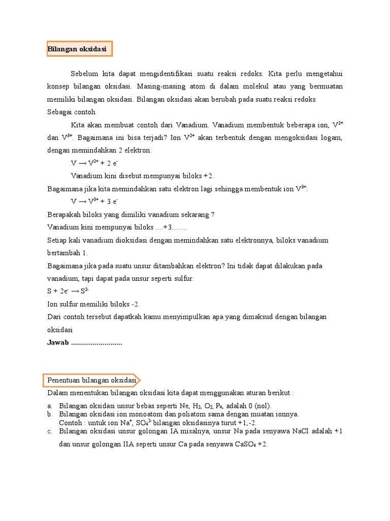 Soal Bilangan Oksidasi Doc Document