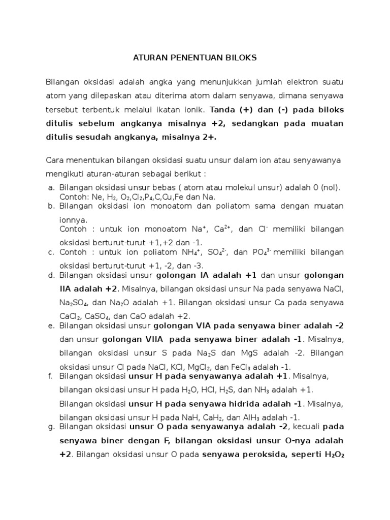 Doc Aturan Penentuan Biloks Almamad Safain Academia Edu