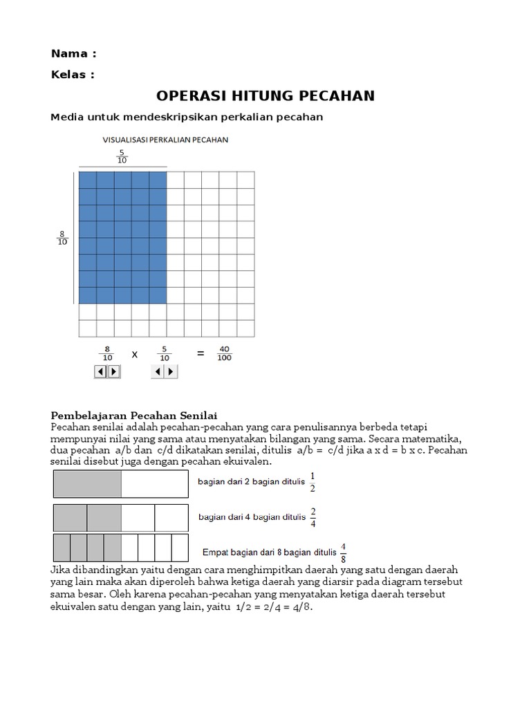Pembelajaran Operasi Hitung Perkalian Pembagian Pecahan Di Sd