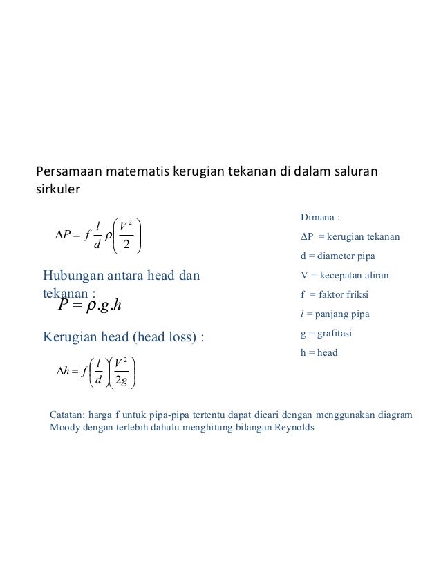 Reynolds number lebih rendah dibandingkan dengan propana pada kondisi mass flux dan heat flux yang relatif sama. Cara menghitung koefisien gesekan darcy. Dalam mekanika fluida bilangan reynolds adalah rasio antara gaya inersia vsr terhadap gaya viskos ml yang mengkuantifikasikan hubungan kedua gaya tersebut dengan suatu kondisi aliran tertentu.