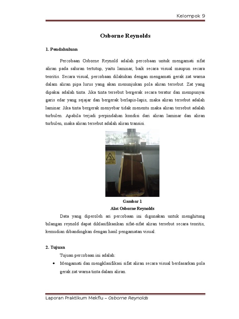 Osborne Reynold Docx Kelompok 2 Osborne Reynold 3 1 Pendahuluan 3 1 1 Latar Belakang Alat Ini Merupakan Tiruan Alat Yang Dipakai Oleh Prof Osborne Course Hero