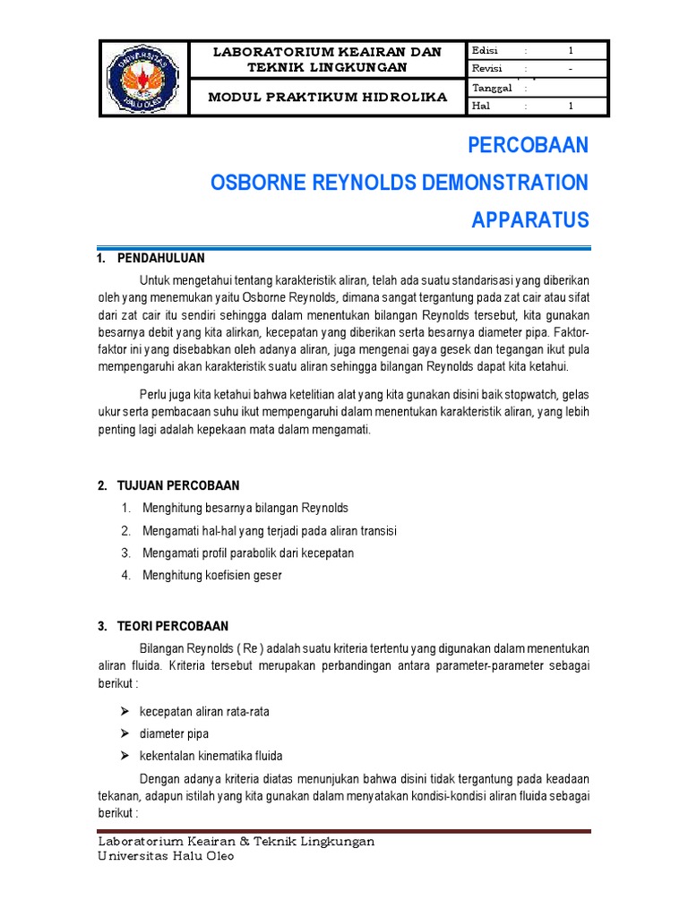 Modul Praktikum Osborne Reynolds 2019 Pdf