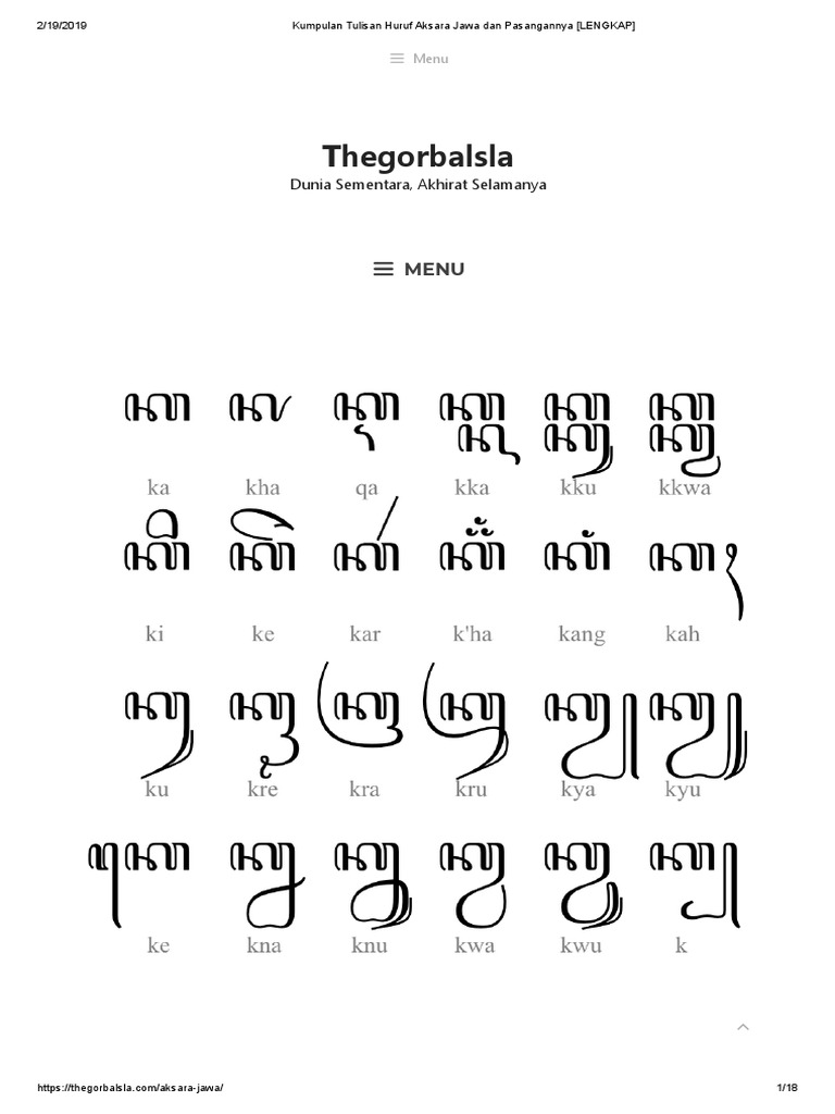 Kumpulan Tulisan Huruf Aksara Jawa Dan Pasangannya Lengkap
