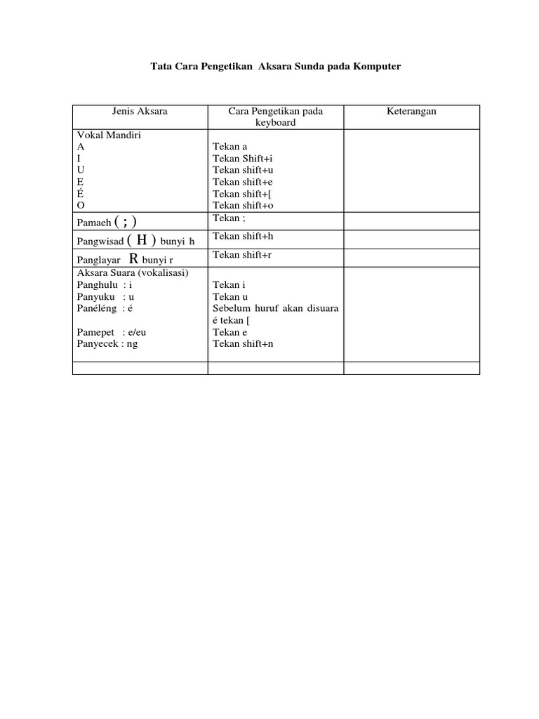 Tata Cara Pengetikan Aksara Sunda Pada Komputer