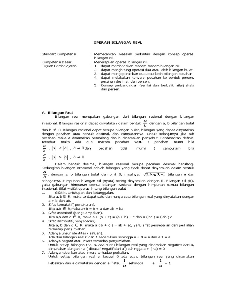Sistem Bilangan Real Operasi Persentase Macam Sifat