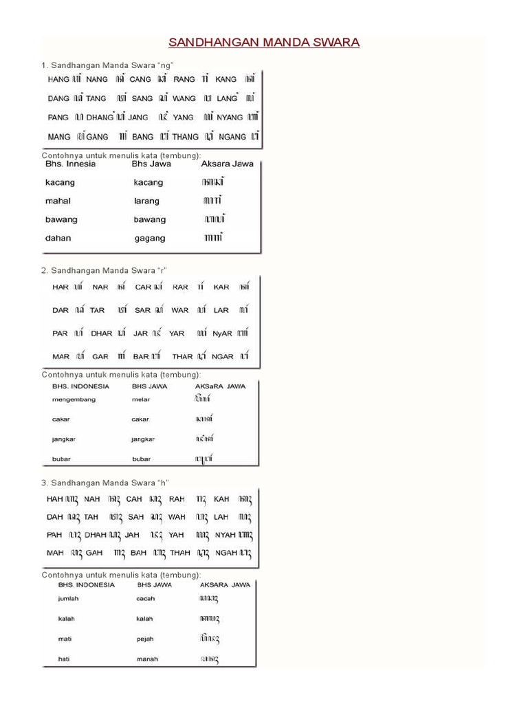 Aksara mandaswara manawa dumunung ing. Di antara wilayah yang menggunakan jenis aksara ini adalah pulau jawa makasar sunda melayu sasak serta umum dipakai untuk penulisan jenis karya sastra yang menggunakan bahasa jawa. Tuladha 6 iya.