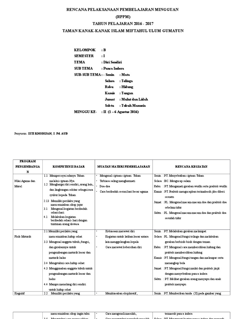 Paud Tk Rppm Kel B Semester 1 Minggu 2 2016 2017 Tema Diri Sendiri