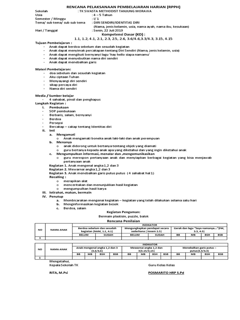 Rpph Paud Tema Diriku Sub Tema Identitasku Guru Paud