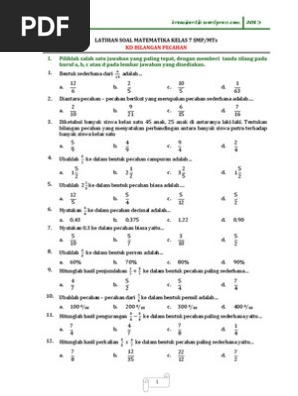 Contoh soal dan pembahasan pecahan. Download soal ulangan semester 1 pelajaran matematika kelas 4 sd sesuai kurikulum 2013 yang berformat.pdf. Kamu dapat download modul & contoh soal serta kumpulan latihan soal lengkap dalam bentuk pdf pada list dibawah ini Contoh soal penjaskes sd/mi kelas 4 semester 1 & 2.