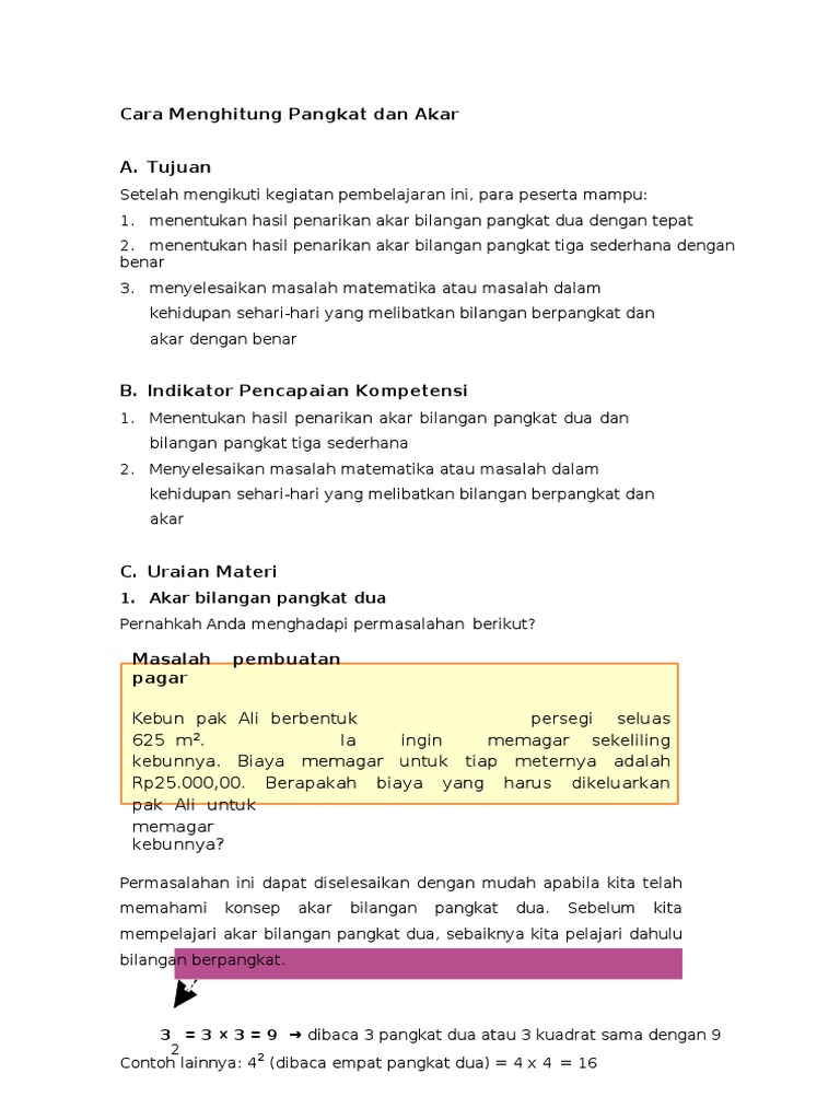 Bahan Ajar Materi Bilangan Berpangkat K13 Untuk Kelas Vii Smp