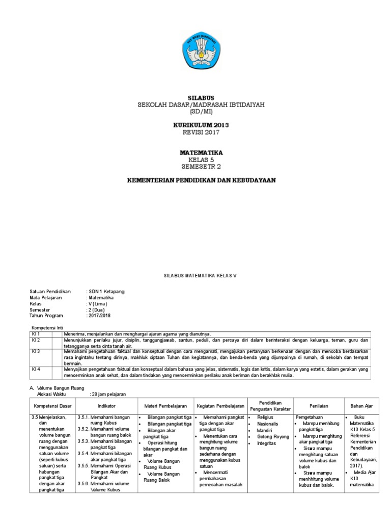 Silabus Sekolah Dasar Madrasah Ibtidaiyah Sd Mi