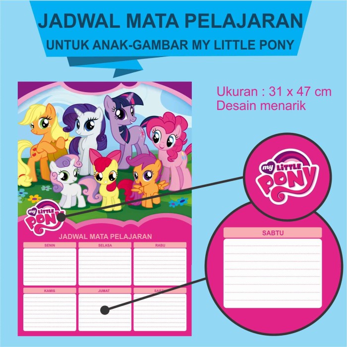 Jual Poster Jadwal Mata Pelajaran Gambar My Little Pony Kota