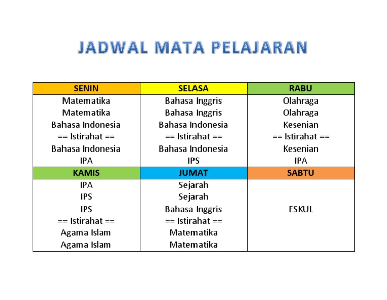 Jadwal Mata Pelajaran Desain Keren Dengan Gambar Kurikulum