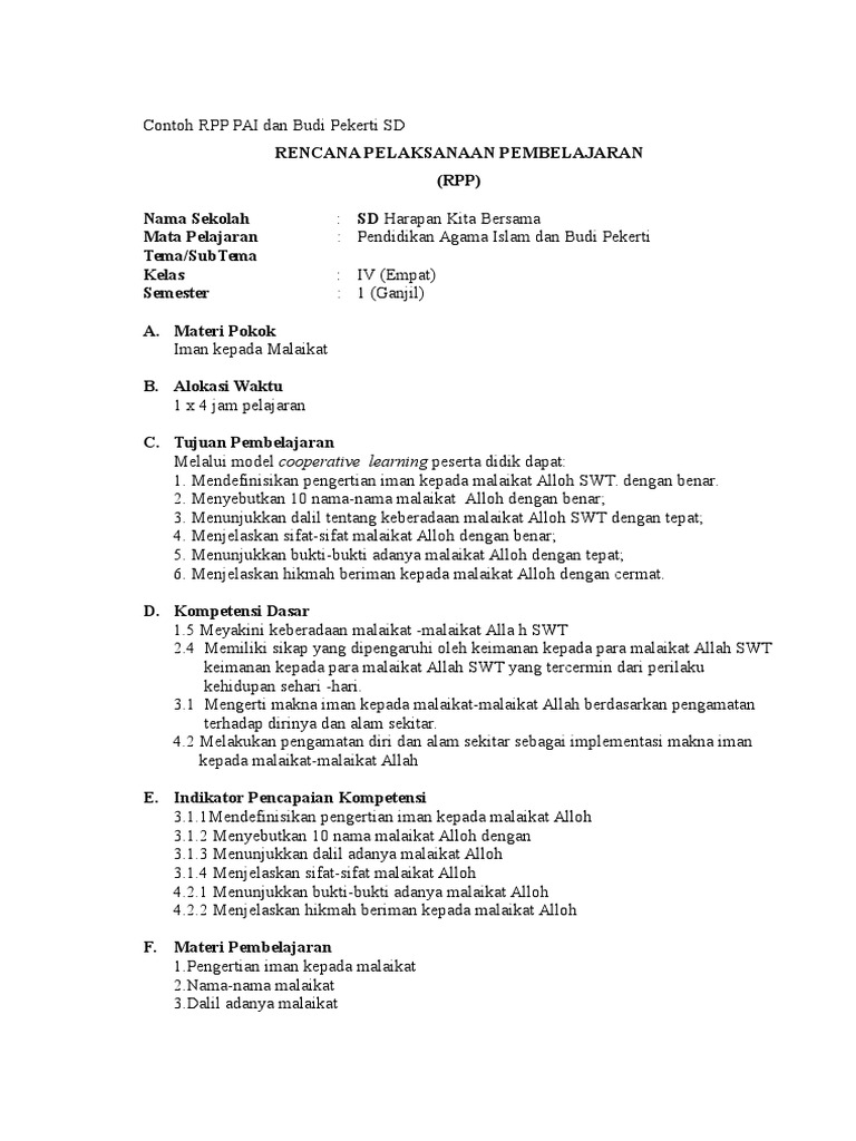 Contoh Rpp Pai Sd Kelas 4 Kurikulum 2013