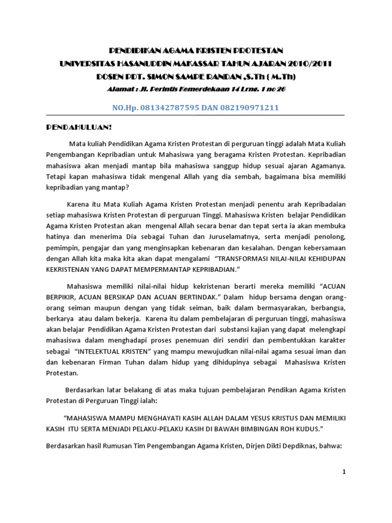 Pdf Pdt Hand Out Mata Kuliah Pendidikan Agama Kristen Tahun