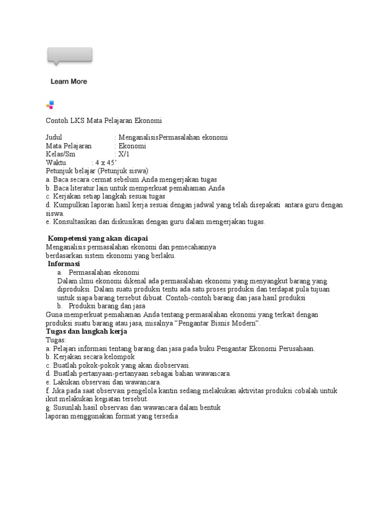Contoh Lks Mata Pelajaran Ekonomi Pdf Document