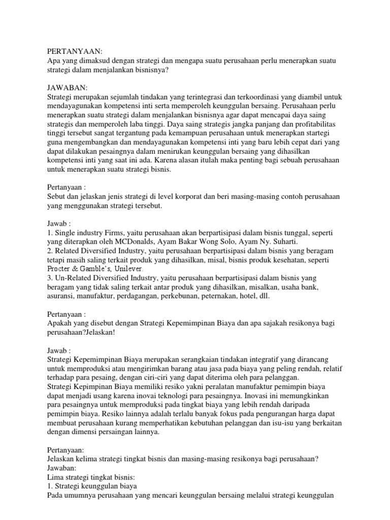 Pertanyaan Dan Jawaban Tentang Struktur Organisasi