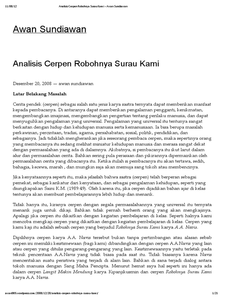 Analisis Cerpen Robohnya Surau Kami Karya A A Navis Sementara