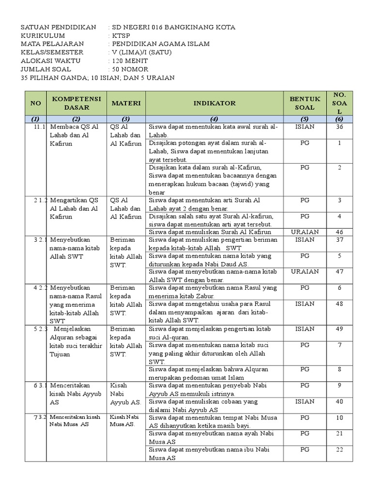 Doc Kisi Kisi Penulisan Soal Pai Docx Marda Kurnia Academia Edu