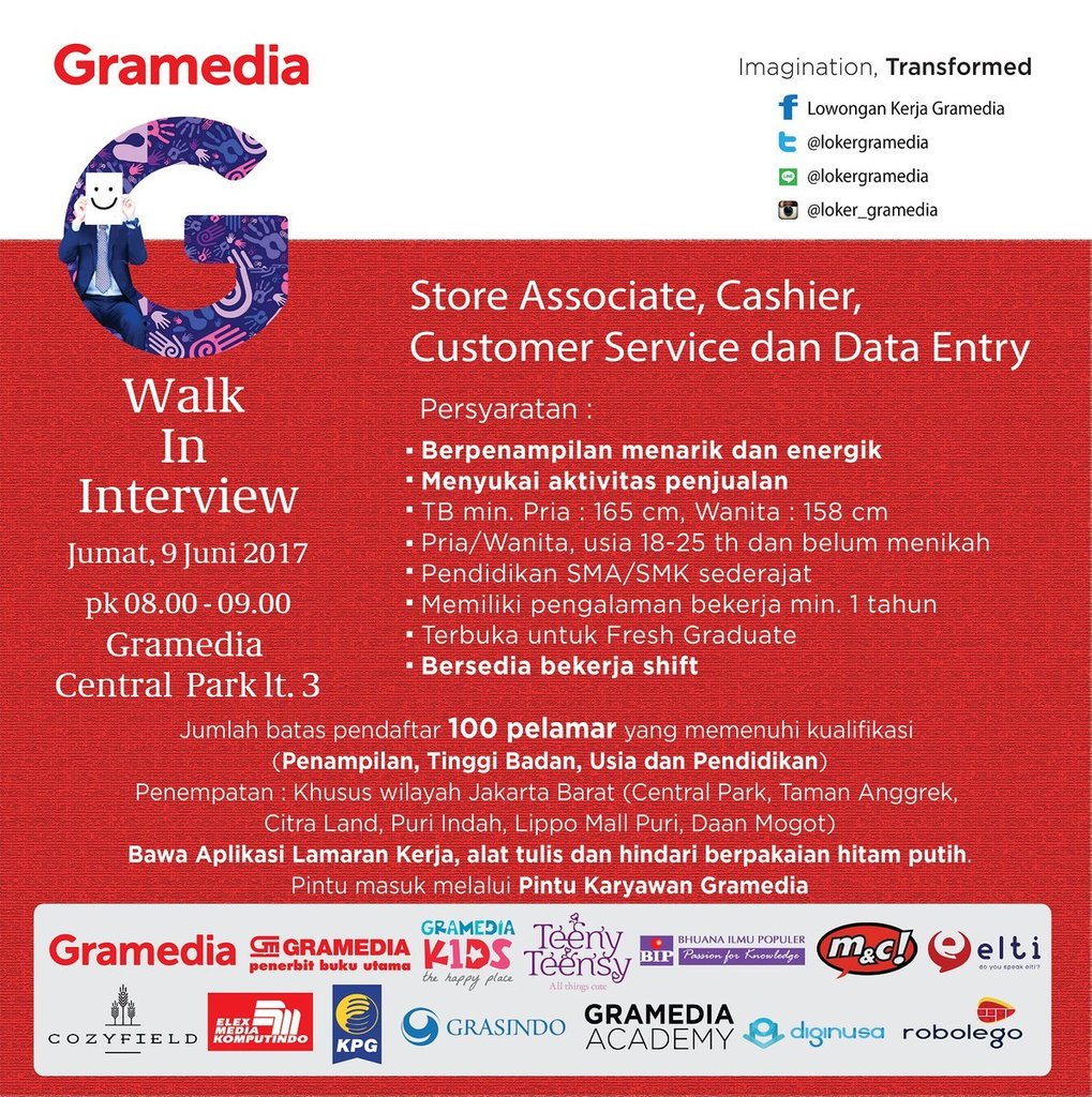 Open Daily Interview Toko Buku Gramedia Penempatan Jkt Tangerang Januari 2018 Serangid