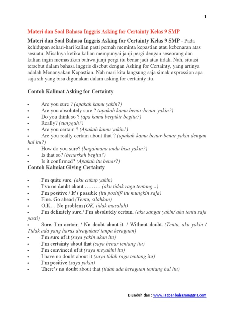 Materi Dan Soal Bahasa Inggris Asking For Certainty Kelas 9 Smp Jagoan Bahasa Inggris