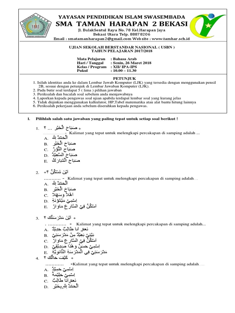 Soal Bahasa Arab Kls 2 Uas Ganjil