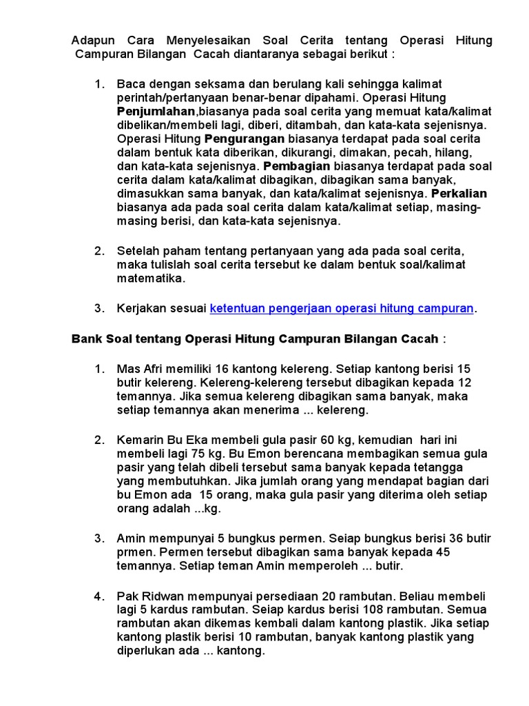 Pembelajaran Soal Cerita Operasi Hitung Campuran Di Sd Pdf