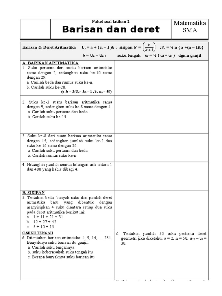 Contoh Soal Barisan Dan Deret Aritmatika Rumus Matematika