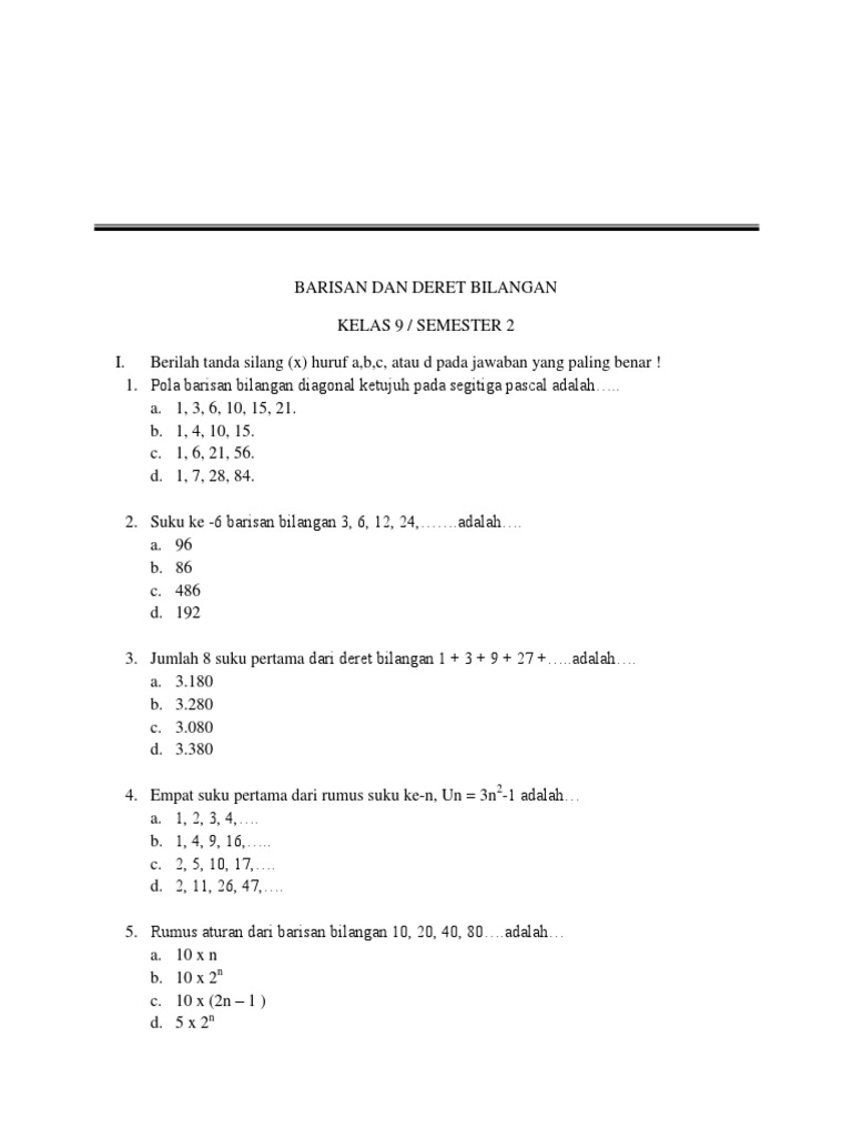 201085130 6 Latihan Soal Matematika Barisan Dan Deret Bilangan