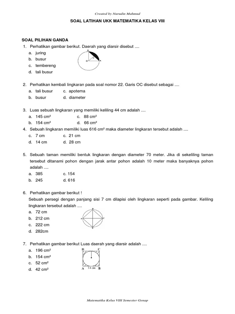 Soal Ulangan Lingkaran Kelas Viii Smp