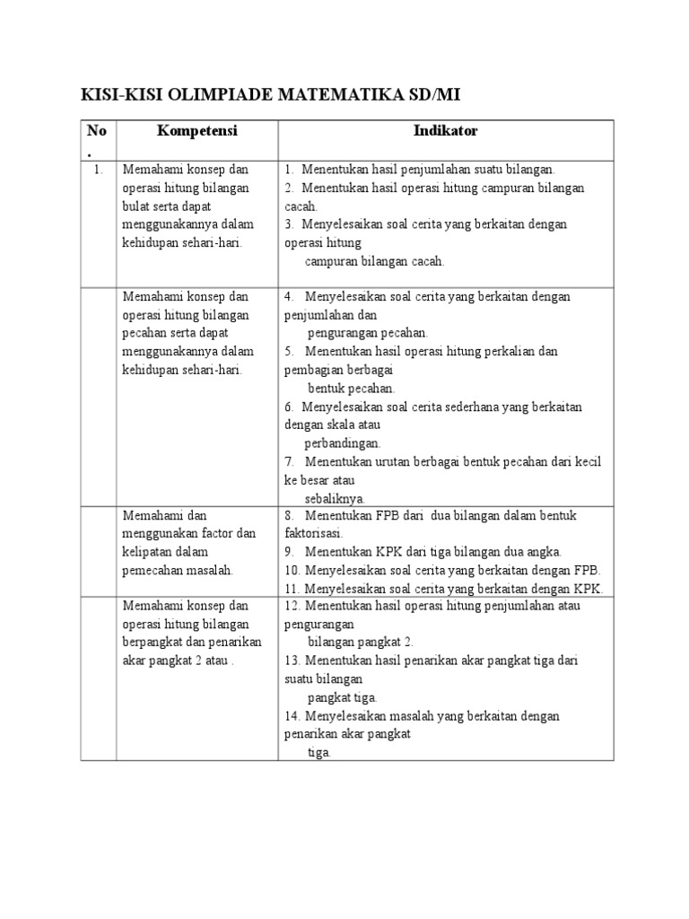 Kisi Kisi Olimpiade Matematika Sd Smp Docx