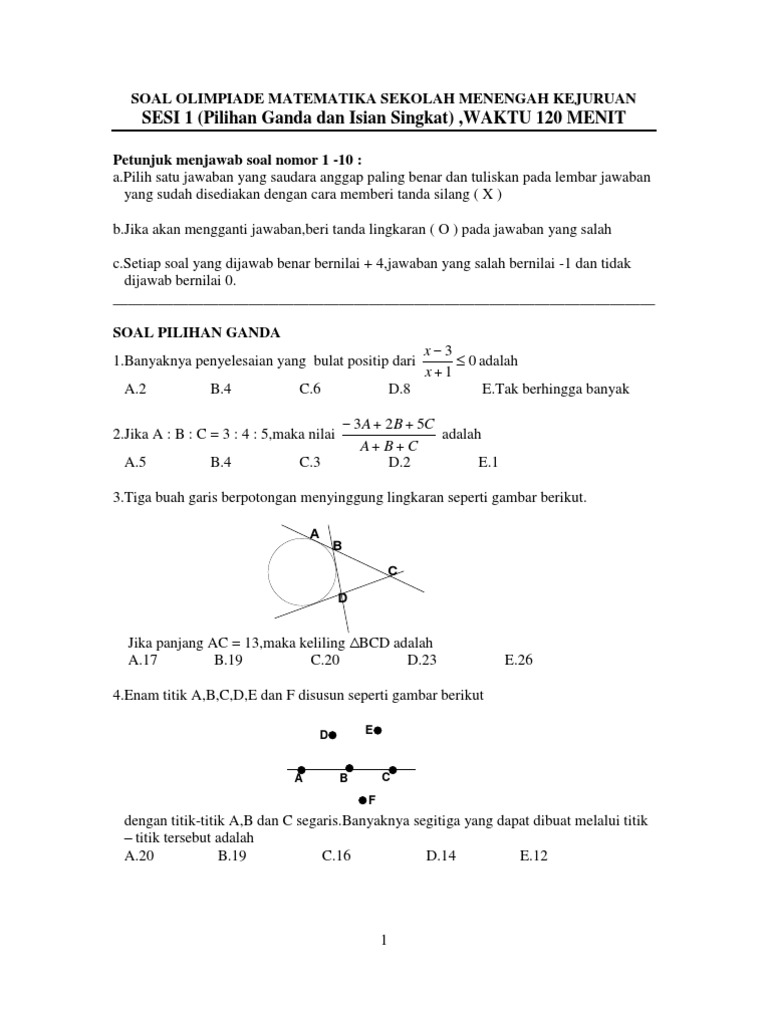 Soal Olimpiade Matematika Smk Sesi 1