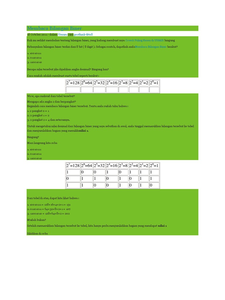 Cara Membaca Bilangan Biner Pemrograman Komputer Dengan Cepat Abengchrist