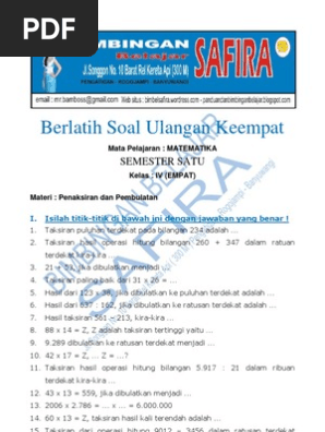 Kumpulan Soal Matematika Kelas 4 Sd Semester 1