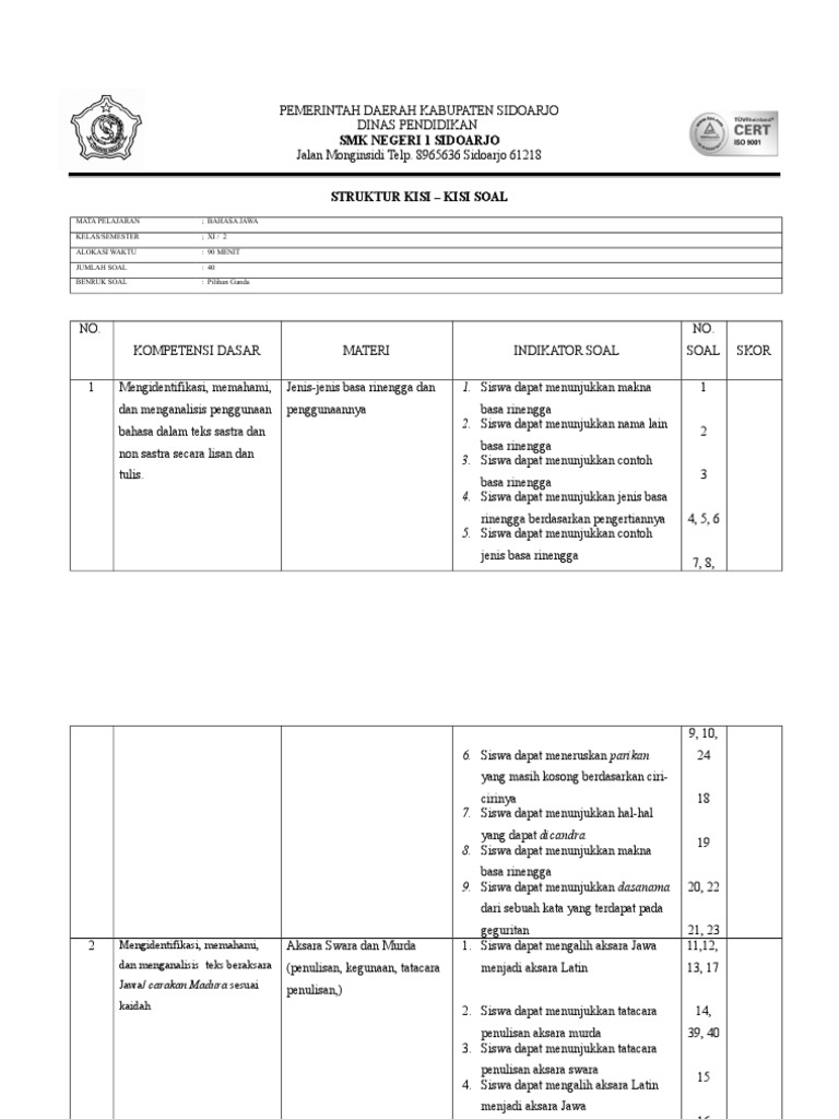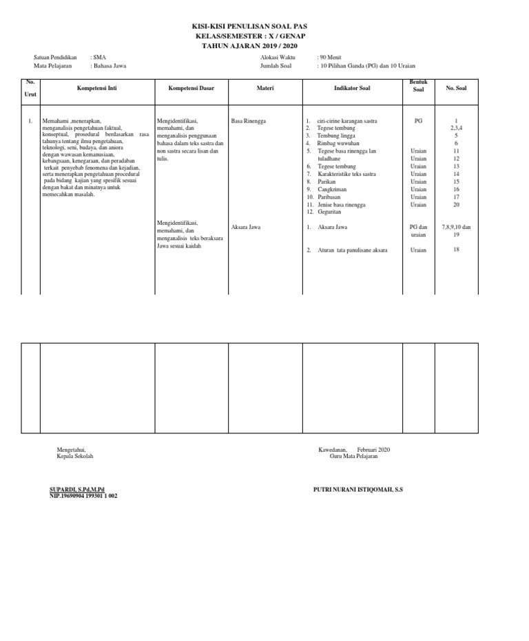 Kisi2 Pas Bhs Jawa Genapkelas Xtahun 19 20