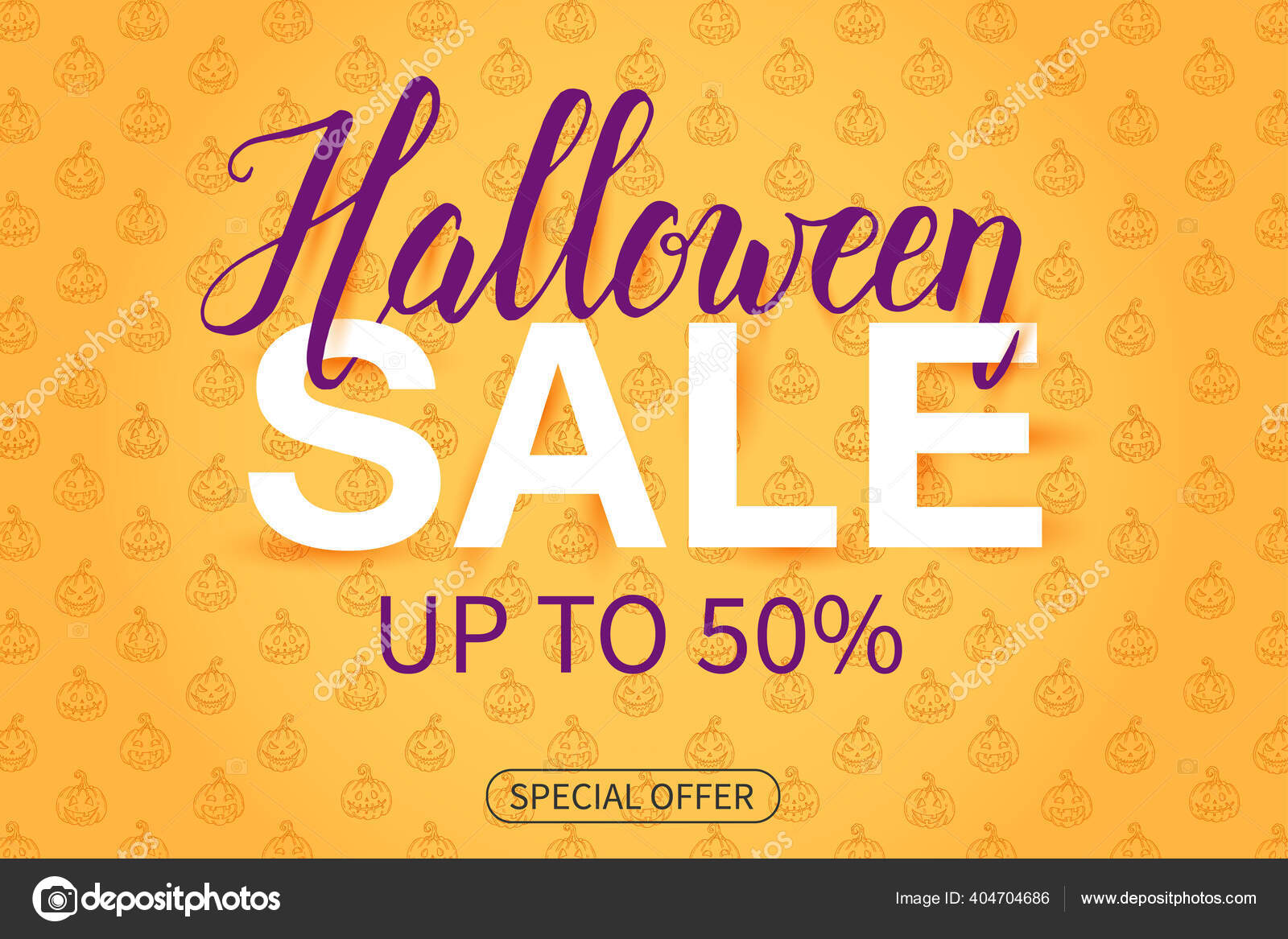 Halloween Sale Poster Dengan Huruf Pada Oranye Pola Dengan Jack Stok Vektor C N Melanchenko 404704686
